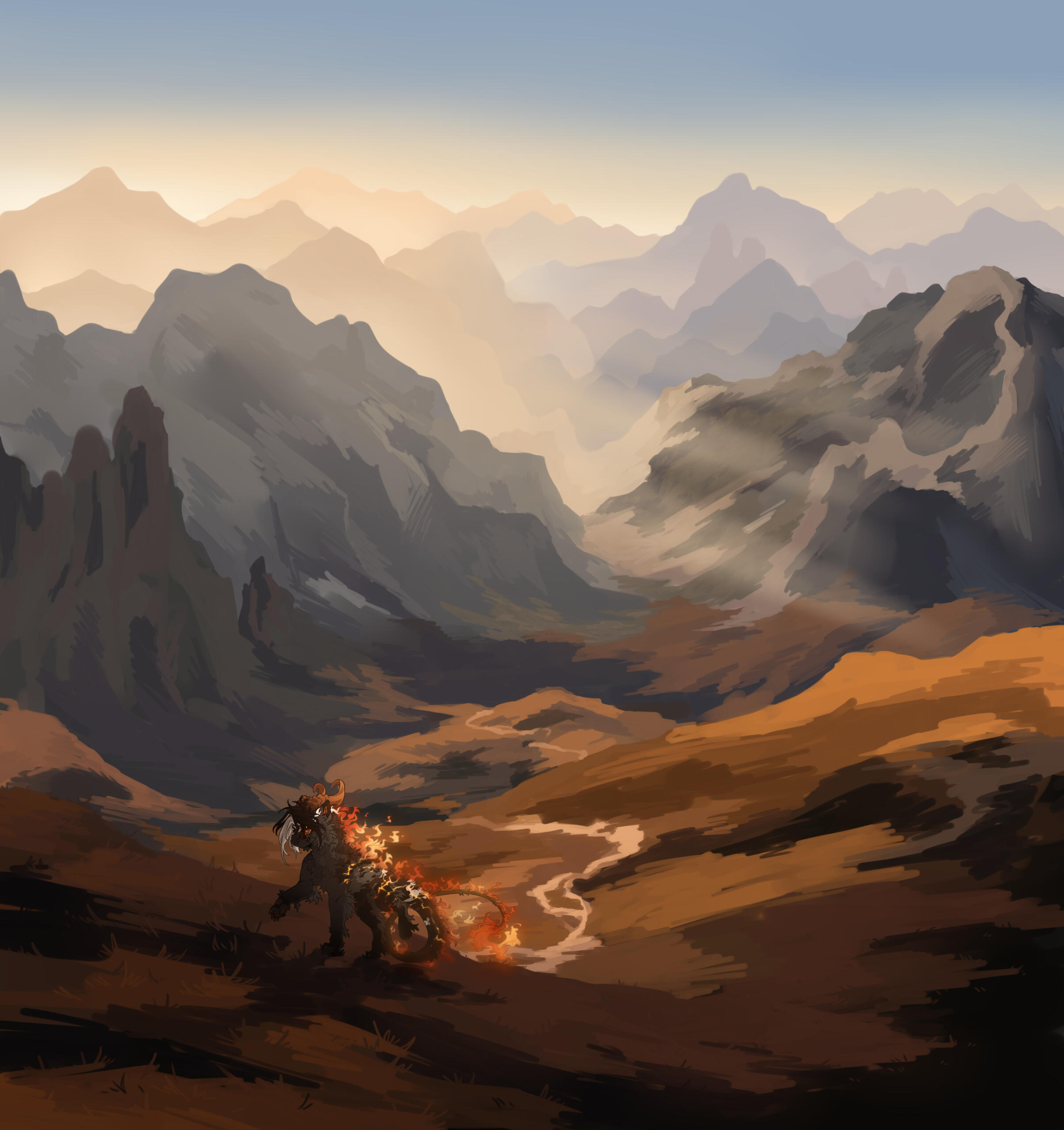 Since then I've been drawing on and off with frequent burnouts. I have my own little universe for my characters and have recently fallen into the hyperfixation of the kebanzu closed species ARPG group.